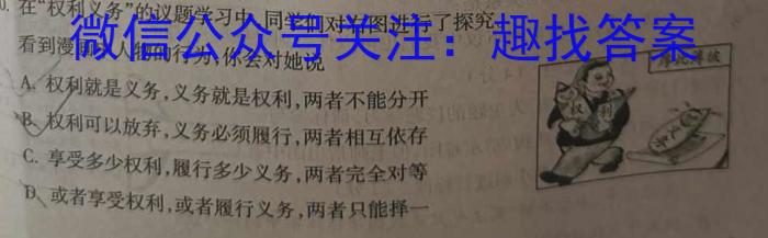 10.在“权利义务”的议题学习中,同学们对右图进行了探究。看到漫画中人物的行为,你会对她说A.权利就是义务,义务就是权利,两者不能分开B、权利可以放弃,义务必须履行,两者相互依存C.享受多少权利,履行多少义务,两者完全对等D或者享受权利,或者履行义务,两者只能择一