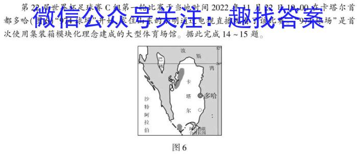 第22届世界杯足球赛C组第一轮比赛于当地时间2024年11月22日19:00在卡塔尔首都多哈(图6)974球场”开始,家住山东的小明通过电视直播观看了该比赛。“974球场”是首次使用集装箱模块化理念建成的大型体育场馆。据此完成14~15题。