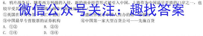 6.鸦片战争后,随着西方列强的入侵,新的商业经营形式被引入中国,上海作为中国最早开放的口岸之一,也较早受其影响。以下曾将上海作为初设地的有()①英国在华开办第一家汇丰银行②盛宣怀创办中国人自办的第一家银行③中国最早专营股票的证券机构④中国第一家大型百货公司一先施百货A.①②B.②③C.①④D.③④